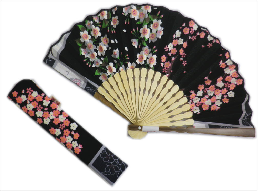 浴衣&着物に 女性レディース用扇子&扇子袋セット黒地桜