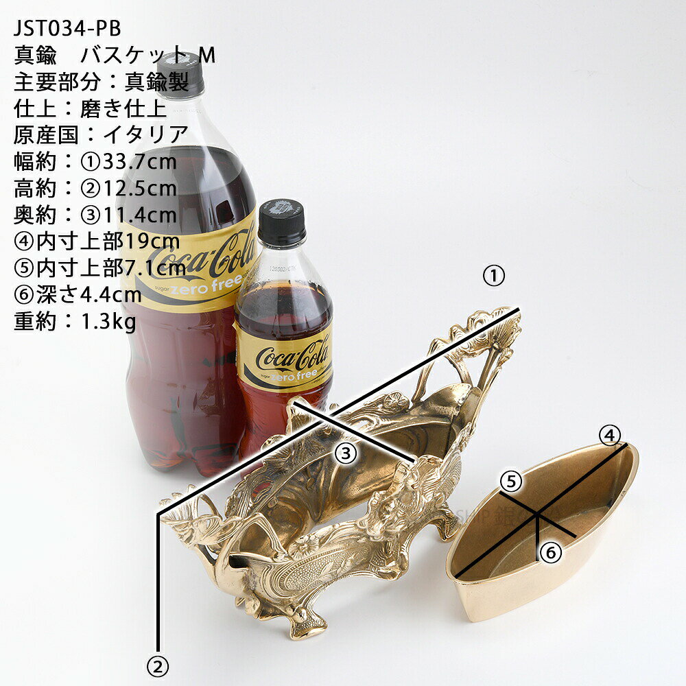 バスケット イタリア製真鍮雑貨 ワインパニエ 果物入れ 花入れ フラワーベース 花器 かご籠 金色 ゴールド 真鍮磨仕上 (バスケットM)(JST034-PB)【RCP】【asu】